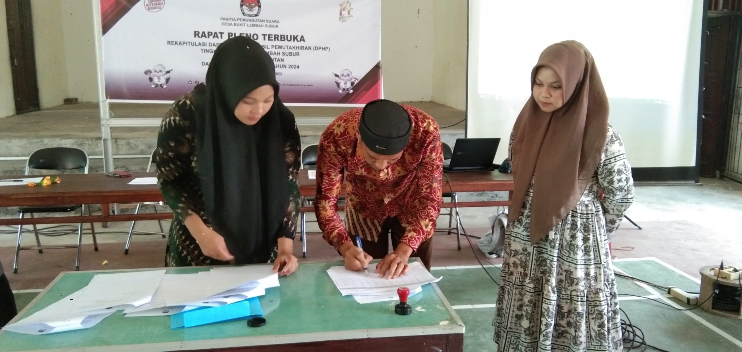 Setelah sesi tanyajawab dan seluruh peserta rapat sudah menerima hasil Penyampaian hasil pemuktahiran maka dengan ini ketua PPS mengesahkan dan dilanjutkan dengan penandatanganan berita acara rekapitulasi. Dilanjutkan dengan penyerahan berkas kepada pihak parpol, Panwas, dan pemerintah desa bukit lembah subur.